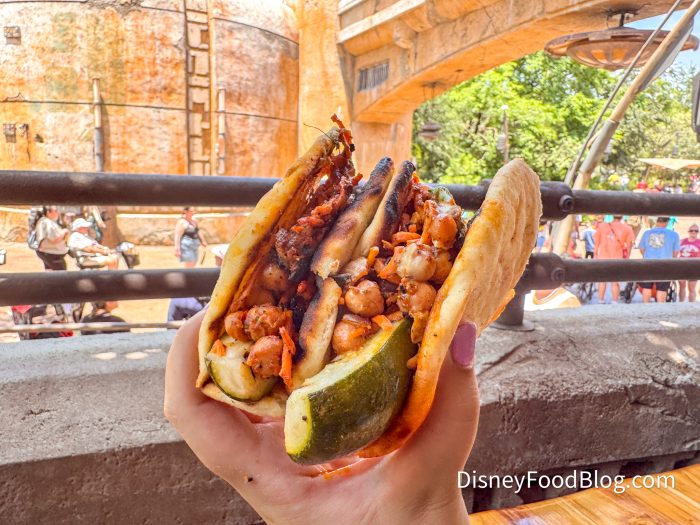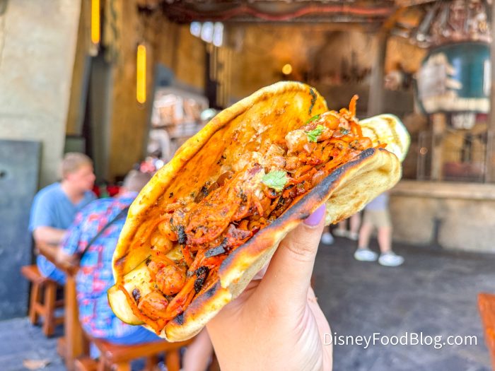 Before you grab this one, be prepared for the spice! It caught us off guard, and while some might love that, our reporter wasn’t a fan. I would say it’s more than the typical “Disney World spicy,” you might see meaning it really packed a punch rather than just adding flavor.