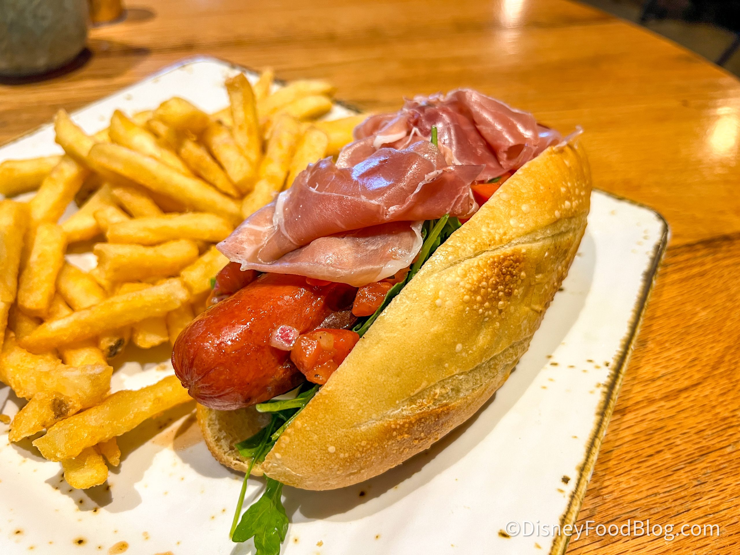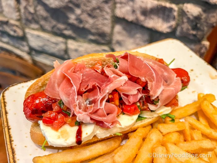 The GCH Craftsman Grill offers a hot dog option each month, and for the month of August, you can grab the Caprese Dog for $17. This hot dog features an all-beef hot dog, basil pesto aioli, fresh mozzarella, wild arugula, lemon oil, tomato bruschetta, pomegranate glaze, prosciutto di Parma, on a fresh-baked Italian roll. It is served with a side of fries.