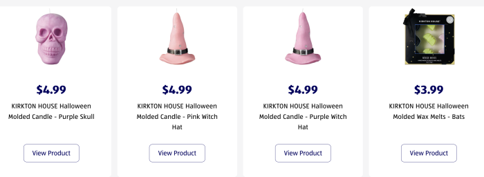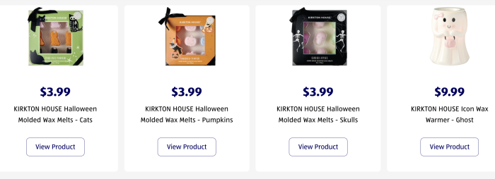 They will have skull candles, witch hat candles, plus several Halloween wax melts if you don’t want to light a flame for the fear of summoning the Sanderson Sisters.