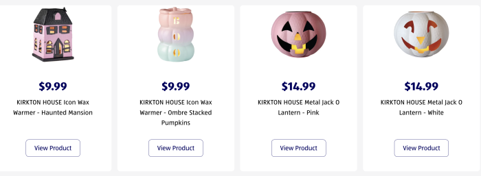 The wax warmers are inspired by ghosts, haunted houses, and stacks of pumpkins! Plus, they also have metal Jack O Lanterns so you can ward off the spirits all season long.