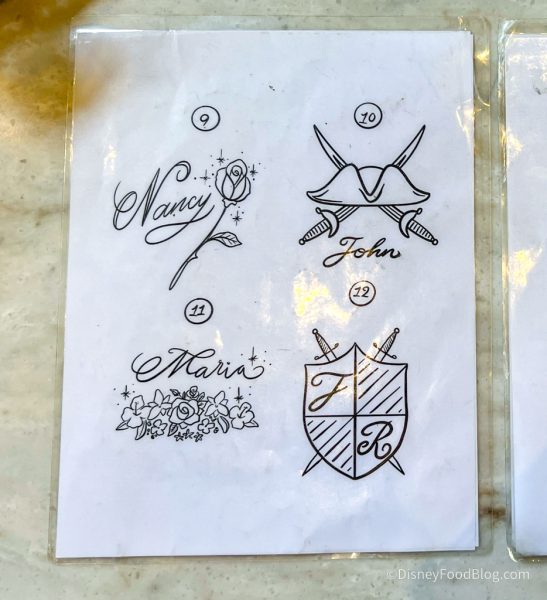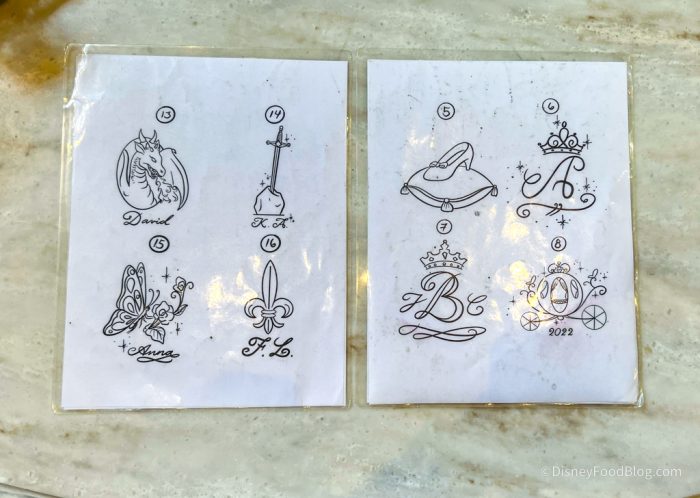 Here’s a look at some of the engraving options. You can get a Disney-inspired design engraved or ask for the artist to write your name or initials. And yes, this is FREE. All you have to pay for is the perfume bottle itself. And by the way, the perfume bottles are refillable, so you can keep your custom bottle on your vanity forever!