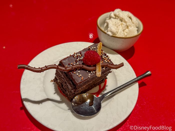 This thing was a great way to wind down our experience. You’ll find the whole cake slice sitting on top of a tart, raspberry sauce, which brightens up the flavor of each bite when you run your spoon by it with each scoop.