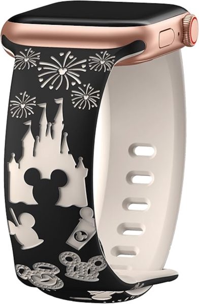 This Disney-inspired Apple Watch design features a charming dual-color pattern with engraved castles and firework designs, and is compatible with the following Apple Watch models: 38mm 40mm 41mm 42mm 44mm 45mm 49mm Series 10, Series 9, Series 8, Series Ultra/Ultra 2, Series 7, Series 6, Series 5, Series 4, Series 3, Series 2, Series 1, SE.