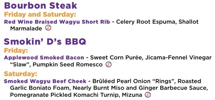At the Bourbon Steak booth you can find Red Wine Braised Wagyu Short Rib and at Smokin’ D’s BBQ you can find Applewood Smoked Bacon on Friday and Smoked Wagyu Beef Cheek on Saturday.