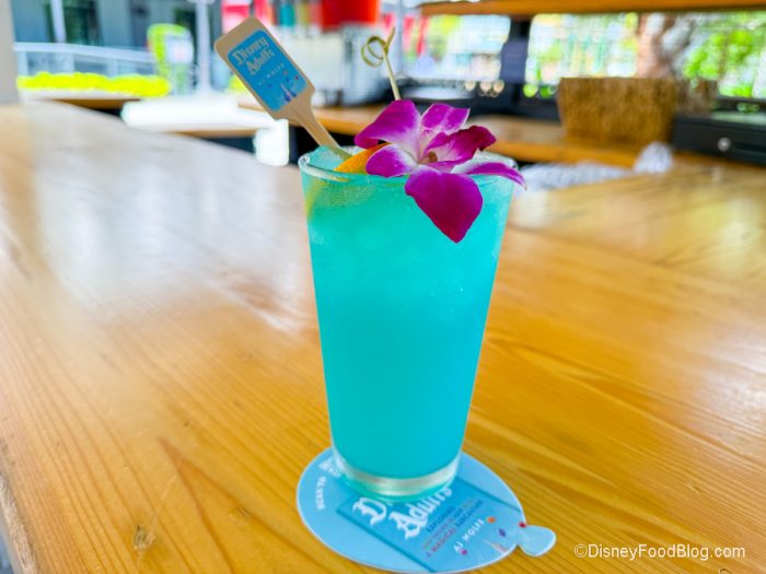 The BOATHOUSE has one of our favorite drinks, which is the Frozen Duck Duck Razz! The Duck Duck Razz is already iconic in Disney World, and this takes it to the next level. It’s made with Skyy Raspberry Vodka, Blue Curacao, lemon juice, and simple syrup, and it comes with an adorable rubber duck. This is basically an alcoholic blue raspberry slushie in a souvenir cup that we can’t get enough of!