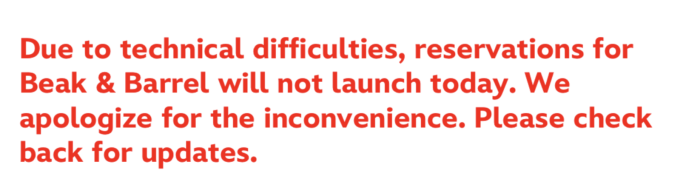 I’ve been up on and off since midnight waiting for reservations to open. I waited 2 hours for someone to pick up on the phone for reservations and the nice cast member let me know that Disney world would be postponing the reservation opening date for Beak & Barrel that it probably won’t happen today she said.