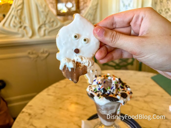 We weren’t leaving without dessert, so we had the Ghostly Delight Sundae for $9. This sundae is chocolate ice cream topped with chocolate cookie crumbs, marshmallow cream, almonds, sugar cookies, and sprinkles. So what if we cried about how cute it was when it was delivered to my table? We’re just people who are obsessed with ice cream and cartoon ghosts.