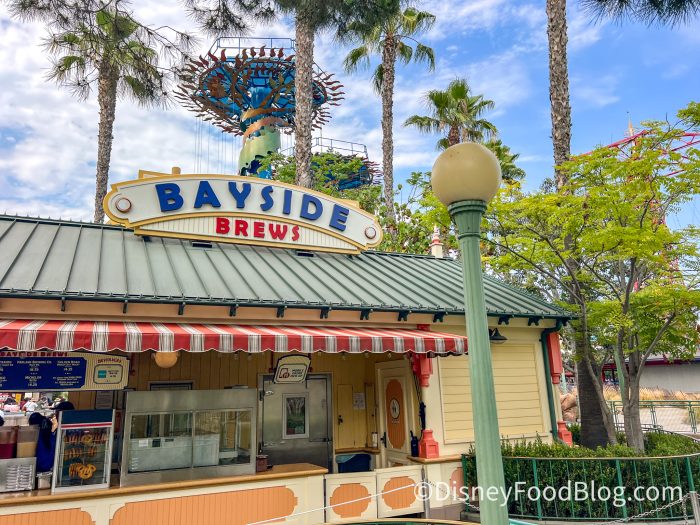 Bayside Brews is a smaller snack cart located in Paradise Gardens Park, which is right next to Pixar Pier. Paradise Gardens is home to attractions such as The Little Mermaid – Ariel’s Undersea Adventure and Goofy’s Flight School.