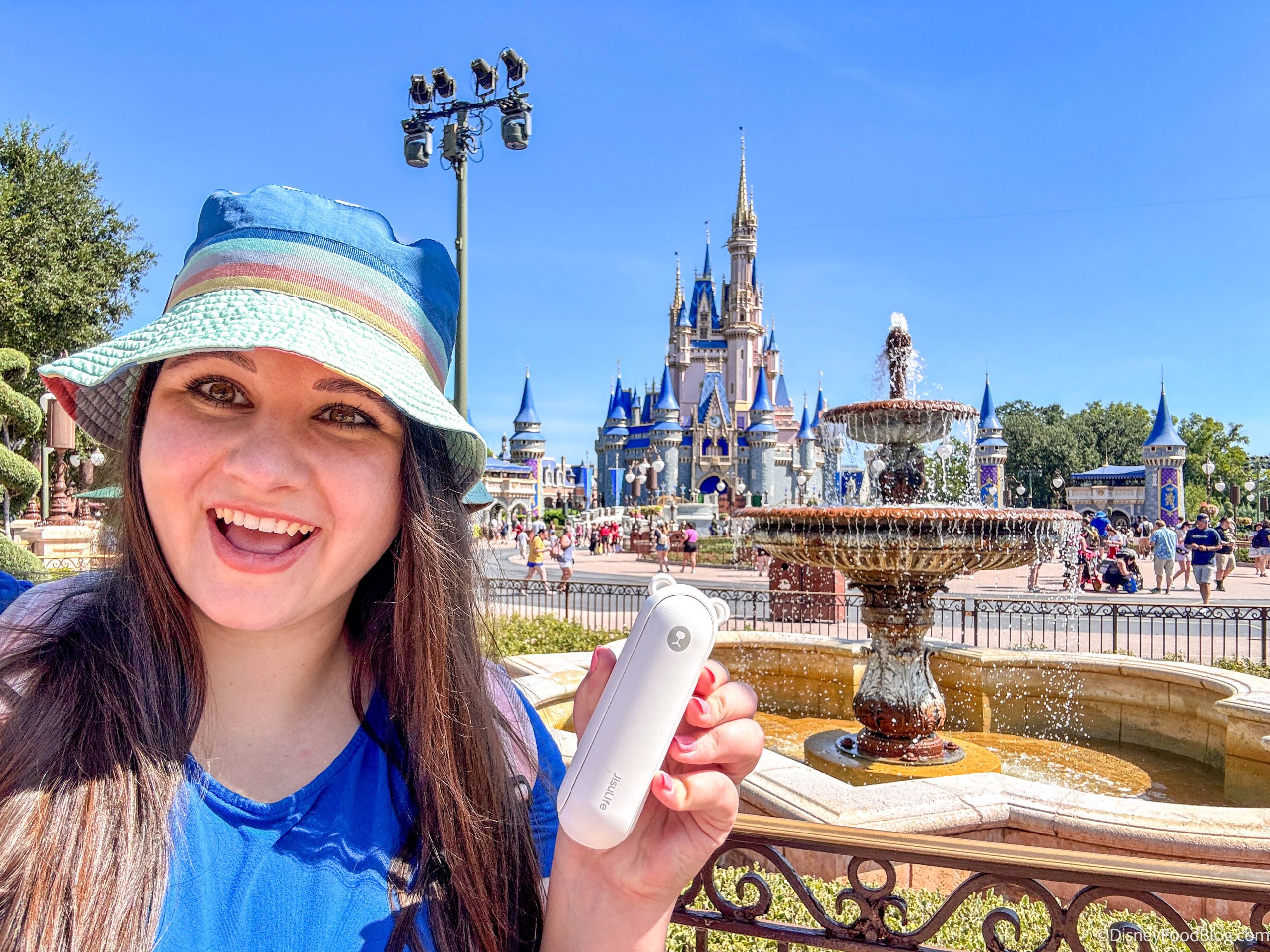 Featuring a fan, flashlight, and backup power bank, the JISULIFE pocket bear fan is your summer go-to essential for staying cool on hot days while offering versatile functionality to meet your needs. We use this ALL THE TIME in the parks!