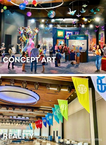 And, while some might say, “That’s progress,” it’s hard to not be disappointed when the concept art is just so wildly different from what we ended up with. CommuniCore Hall might be the best example of that — especially when it first opened, as evidenced below. The concept art looked like a colorful art gallery with fun installations, and when it actually opened, it pretty much looked like a school cafeteria.