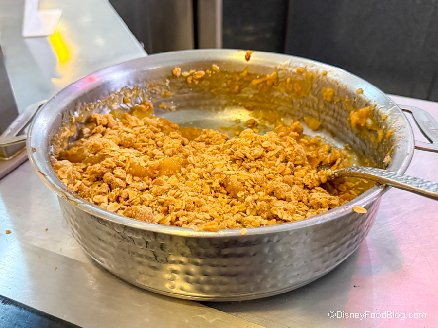 Okay, let’s talk about the most important thing: DESSERT. The apple cobbler tasted more like a strudel to us because of its consistency. It’s got some dried oatmeal on top, though, for the cobbler part. But it still has a great cinnamon apple flavor. However, the oatmeal on top didn’t do it for us — we like a traditional doughy cobbler.
