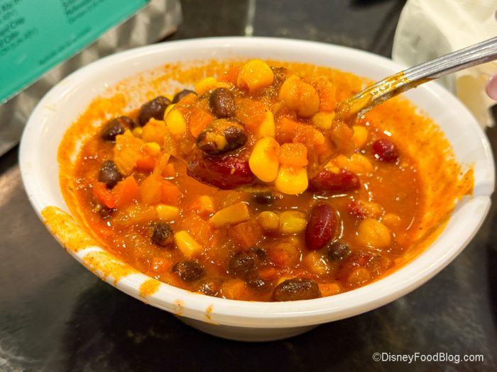 We also tried the vegetable chili. It’s got red beans and chickpeas in it instead of meat, but it’s nice and savory. If you can get past the fact that it doesn’t contain meat, it’s a pretty decent chili.