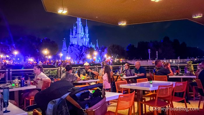 During the party, entertainment is one of the most popular offerings, and with back-to-back shows like the Mickey’s Boo-To-You Halloween Parade, Hocus Pocus Villain Spelltacular, and of course, the fireworks, which can lead to quite a bit of chaos in front of Cinderella Castle. We loved having this option to avoid some of the crowds! It was nice to know that we had a spot guaranteed and didn’t need to line up early to secure a spot.