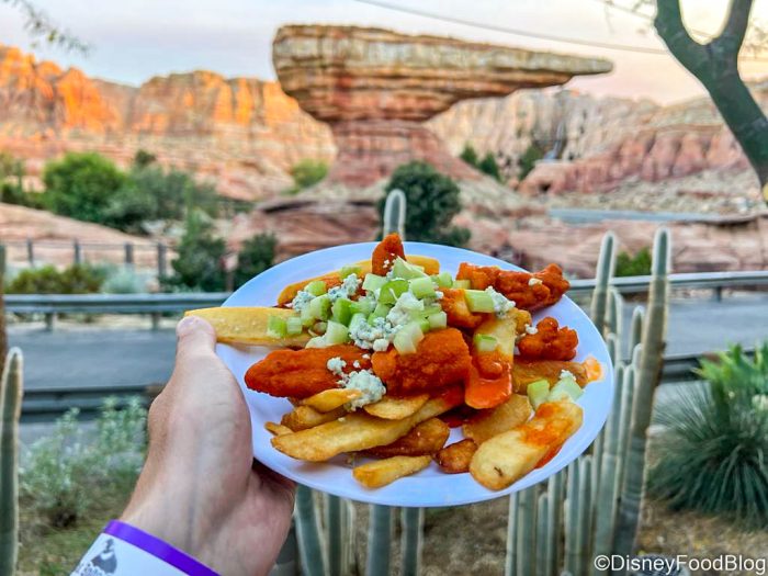 The Carolina Loaded Tenders are also returning to Flo’s V8 Cafe. These are steak fries topped with chicken tenders tossed in a tangy Carolina BBQ sauce, drizzled with dill pickle ranch, and topped with chopped dill pickles for $14.99. The taste of these start out as sweet, but then the heat kicks in. We will warn you that these are a little more than Disney spicy! The ranch, though, does mellow out the spice a bit.