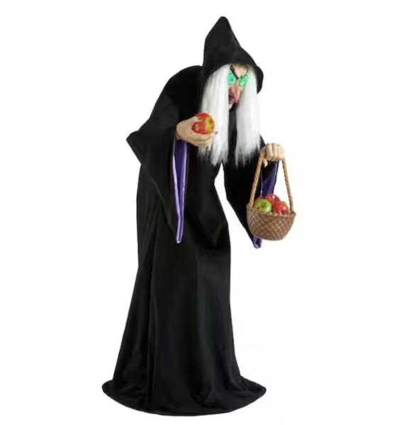 Yes, the Home Depot has created an LED Evil Queen animatronic for you to bring home! This animatronic is 5 and a half feet tall and has servo motors for lifelike movement. She can move her head, mouth, and waist thanks to those motors. To add to the fun, she says 5 classic Snow White phrases. Not only that, she also has large light-up green LED eyes and a projection light in her poisoned apple to light up the night!