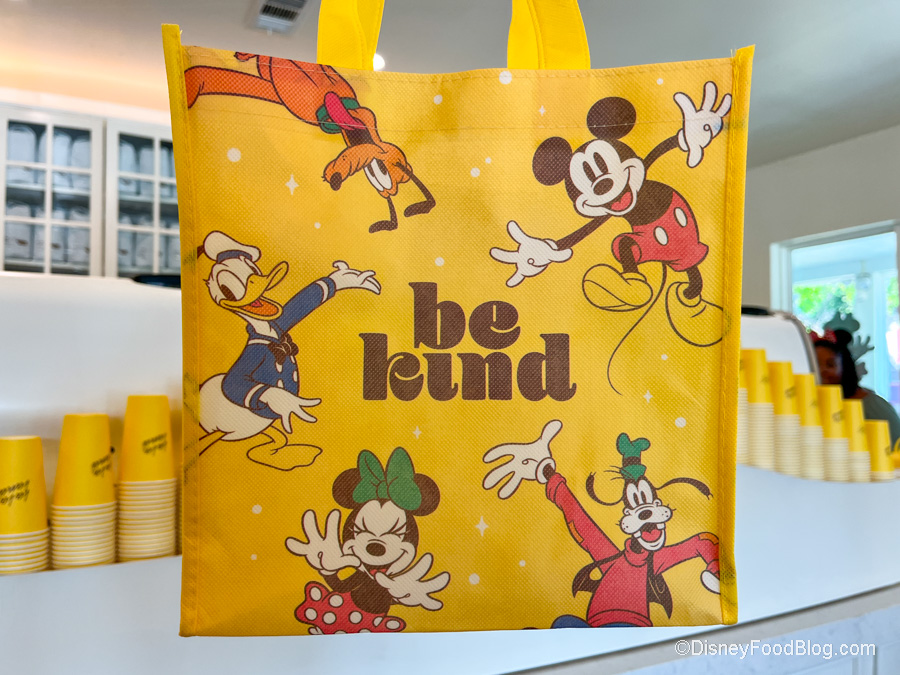Did we mention that they also have Pluto-themed pup cups? You can also get a complimentary pet bandana while supplies last. “Be Kind” Mickey and Friends totes are also available.