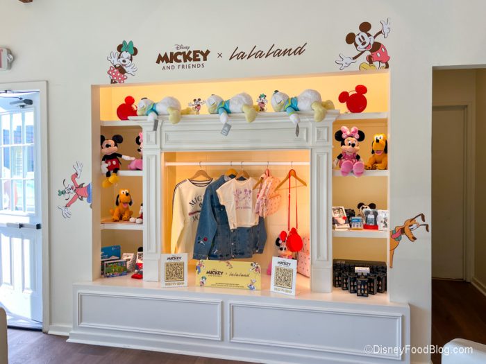 We also noticed a display of Disney merchandise. It’s all for sale, but it’s a QR code that you scan, and buy the product online. Merchandise displays are available at six La La Land Kind Cafe locations: