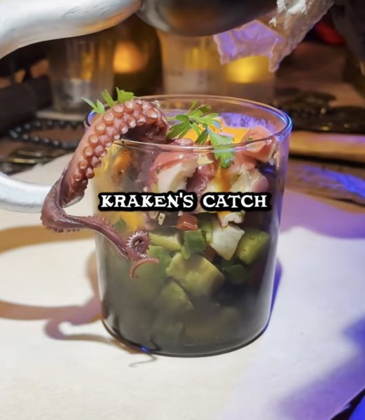 We also got a peek at the Kraken’s Catch which you can grab for $18. This item features octopus tentacles marinated in lemon and lime juice with olives, bell peppers, avocado, and piquillo pepper-almond foam.