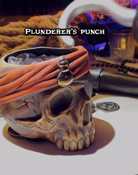 - Plunderer’s Punch, $46.00 — The Kraken Black Spiced Rum, Blackberry, Lime, and Vanilla served in a Souvenir Pirate Skull Mug