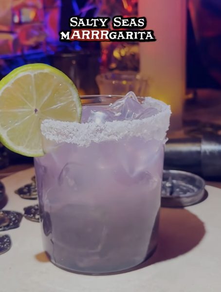 - Salty Seas mARRRgarita, $20.00 — Lalo Blanco Tequila, Cointreau Liqueur, Ube, and Lime