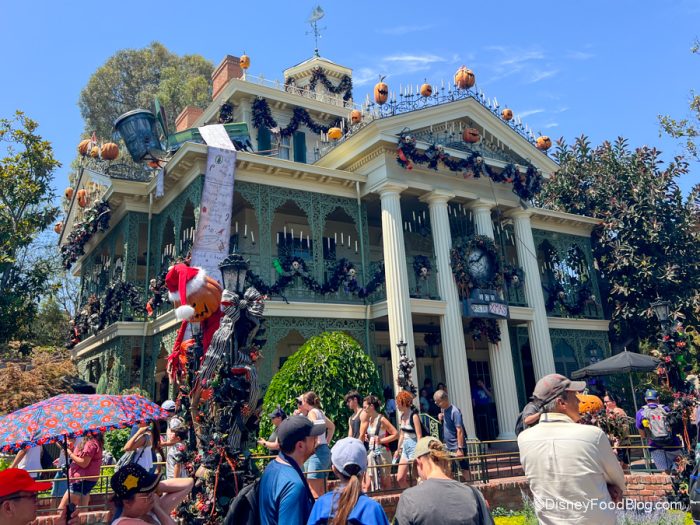 Disclosure: In nearly all circumstances, Disney Food Blog writers and photographers pay full price for their own travel, hotel, food, beverage, and event tickets. We do this because it’s important to us as journalists to ensure not only that we give you unbiased opinions, but also that you can trust us to do so since we’re paying our own way. On rare occasions, when we are invited by a company to attend a preview as media, and when we choose to accept that invitation, we will always make you, our readers, aware of that situation. Today, we were invited by Disneyland to attend an early preview of Haunted Mansion Holiday. Note that when we attend events as media we are 1) Not required to review that event/food on any of our channels, and 2) Not required to review that event/food favorably. You can always count on DFB to give you a 100% unbiased and honest review of any event that we attend, food that we eat, or beverage that we drink. You can see more in our Disclosure Policy. Thank you for reading. — AJ