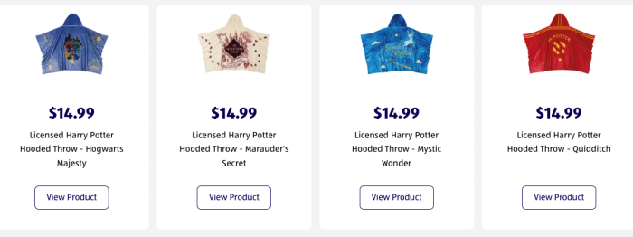 OK, we’re big Harry Potter fans, so let’s go back to that theme one more time. We love these Harry Potter hooded throws.