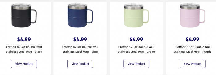 We really liked these travel mugs — they come in black, blue, green, and purple.