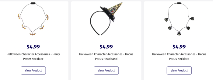 ALDI has a few accessories that we really like, too, including this Harry Potter necklace, Hocus Pocus headband, and Hocus Pocus necklace.