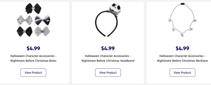 You can’t celebrate Halloween without having something to do with The Nightmare Before Christmas! Check out these bows, headbands, and necklaces, all inspired by the iconic film. Have we found the accessories we’ll be wearing to Magic Kingdom during spooky season? YES!