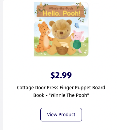 Going in a little bit of a different direction, we thought this Winnie the Pooh finger puppet book was adorable!