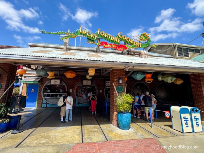 You’ll find Lucky Fortune Cookery in San Fransokyo Square. It’s one of several outdoor dining spots in the area, and of course, is themed to the area.
