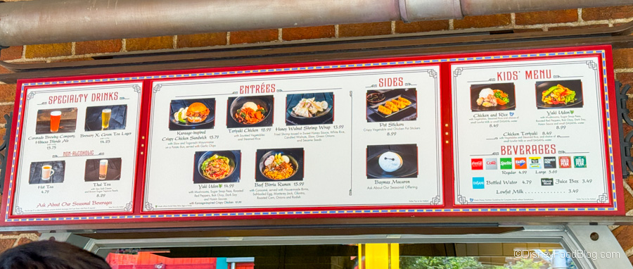 We will note that San Fransokyo has a huge seating area shared by all the restaurants here, but when it gets busy, it can be hard to find a table. But enough about the restaurant — what’s on the menu here?!