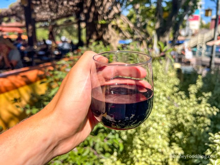 We paid $24 total for both the glass of wine and the cheese plate, and overall, we think it was a great deal! It was a fantastic way to get out of the crowds for a little bit and relax. We highly recommend if you’re wanting a unique experience in the park and want to take a quick break.