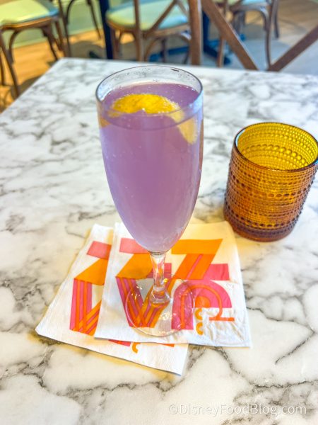 The main flavor from the drink came from the gin, so it’s a strong one! There were hints of sweetness and floral lavender through each sip, and the prosecco added some nice bubbles to the drink. There was a lemon peel on top, so while we saw the lemon incorporated, the flavor didn’t really come through.