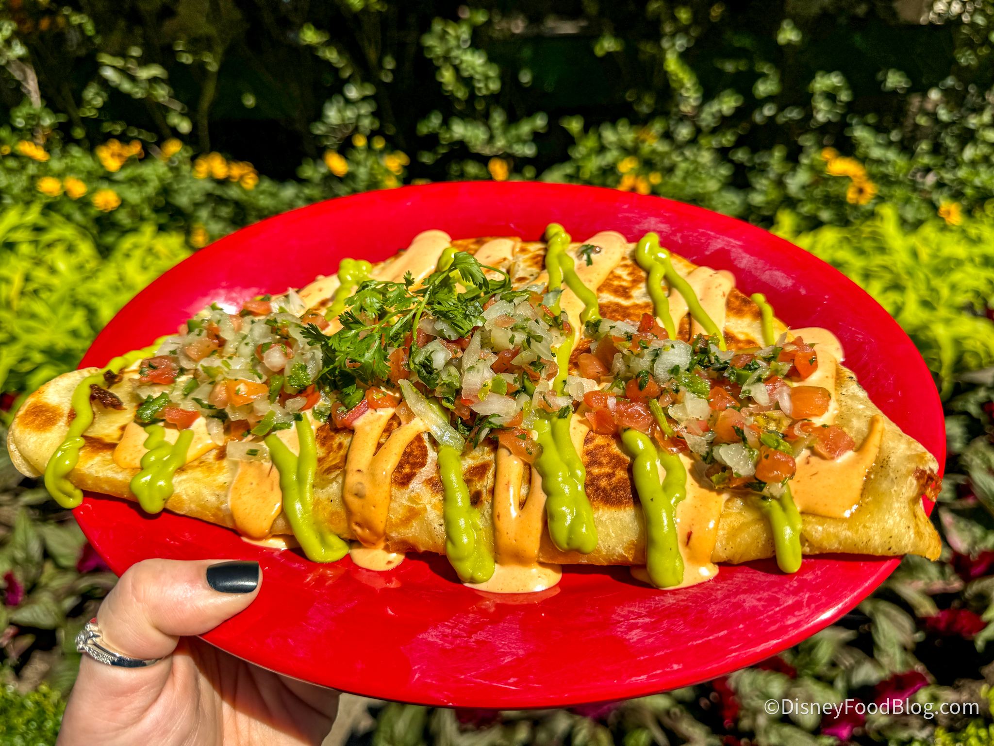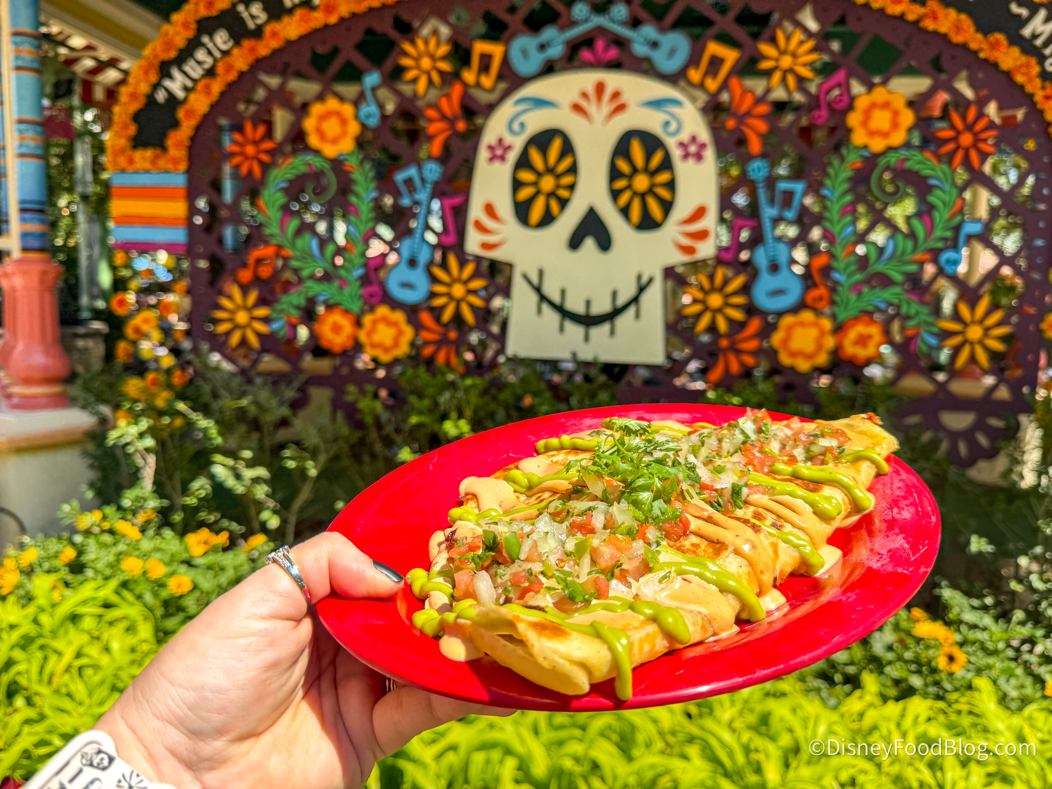 Starting out strong, we grabbed the Oogie Boogie Burrito for $14.49. This is made with carne asada, French fries, spicy blue tortilla chips, pico de gallo, guacamole, and crema.