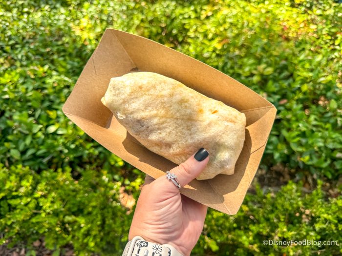 This was incredible! So much so that we’ll be thinking about it forever and will be craving it immensely when it’s gone. This burrito has so much flavor and texture — the crunch from the spicy blue chips works perfectly with the creamy texture of the tart guacamole — and there’s also a good amount of heat.