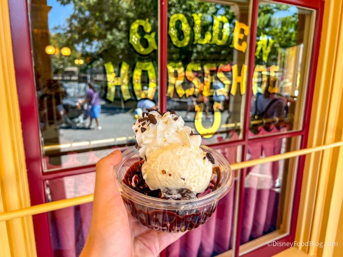 First up in Disneyland was The Bride Sundae for $9.99, which is brownie cake, vanilla ice cream, cookies and crème chocolate crumble, whipped topping, and chocolate sauce.
