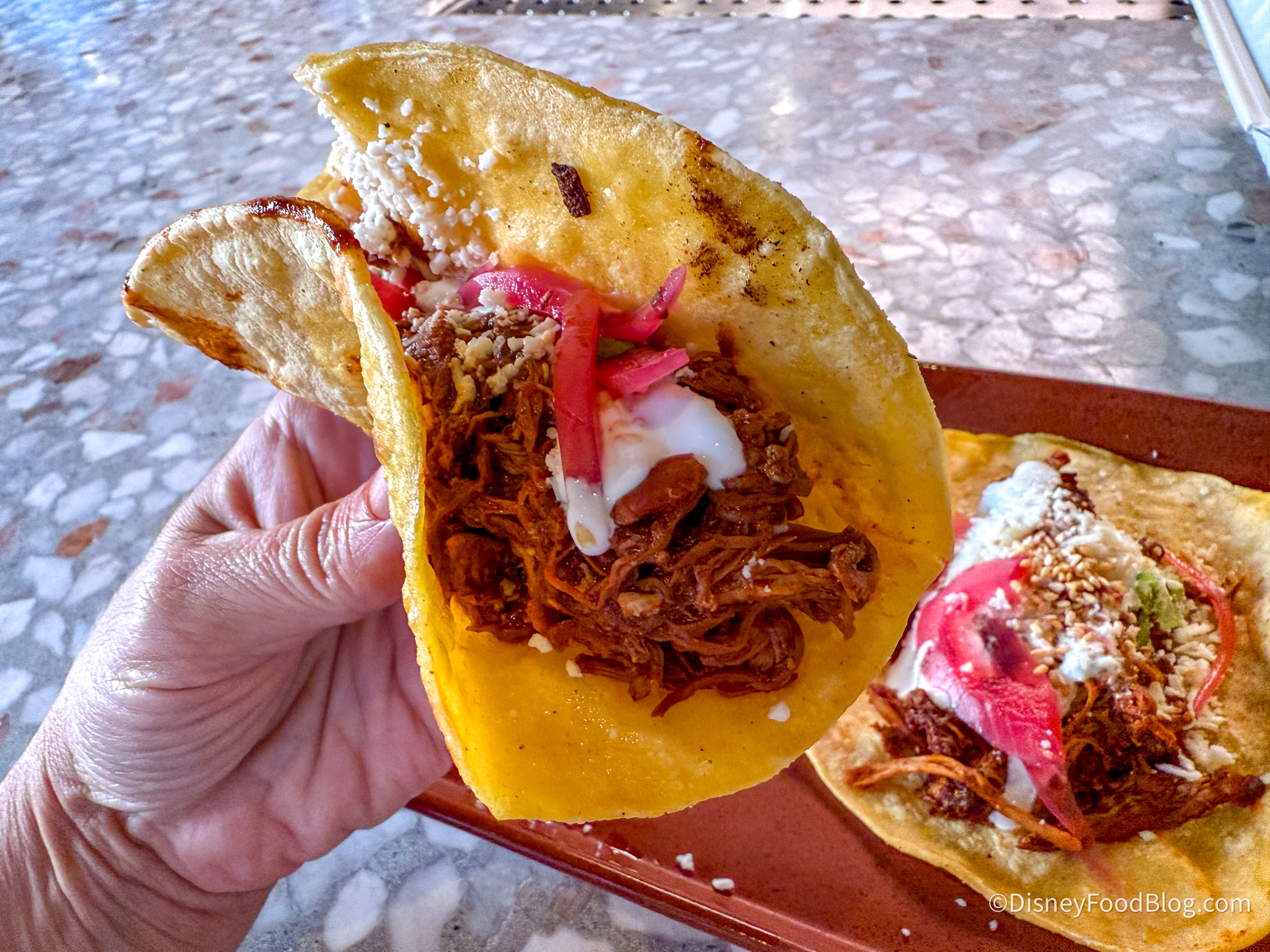 These were so good, they practically changed our reporter’s life. All the ingredients worked beautifully together — the meat was so tender, the mole sauce had a fantastic smoky sweetness to it, and the pickled red onions had a fantastic sharpness and tang that cut through the mole sauce. We also think the onions added a great crunch to the dish, which is great as a texture element since everything else is soft.