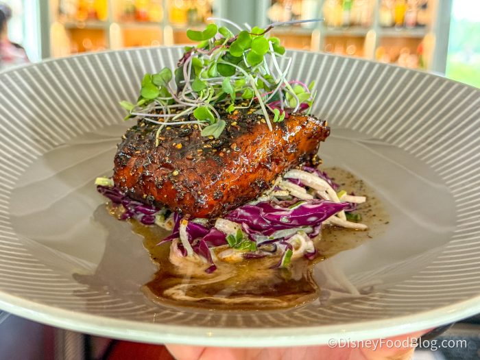 The Four Flamingos is located inside the Hyatt Regency Grand Cypress and is open nightly from 5 PM until 10 PM. The restaurant is located just up the road from Disney Springs (about a 10-minute drive) and could be a great option for a sit-down restaurant after a day at the theme parks or if you are looking to celebrate a special occasion. The restaurant usually has walk-up availability and offers complimentary valet and self-parking for diners.