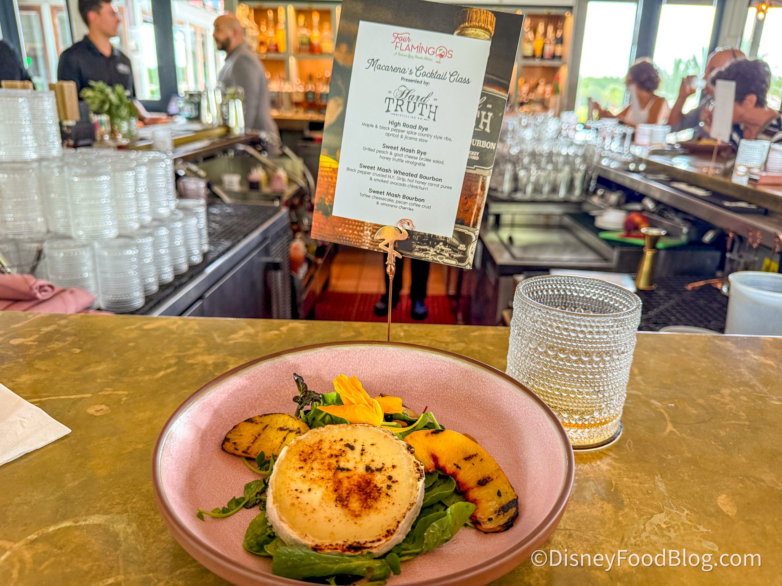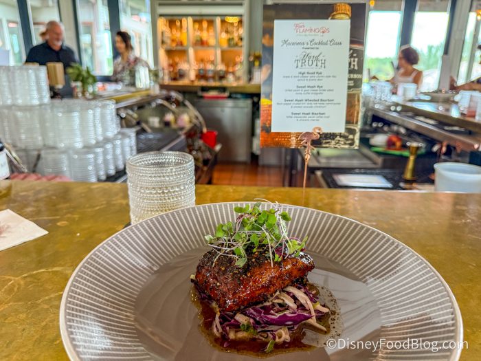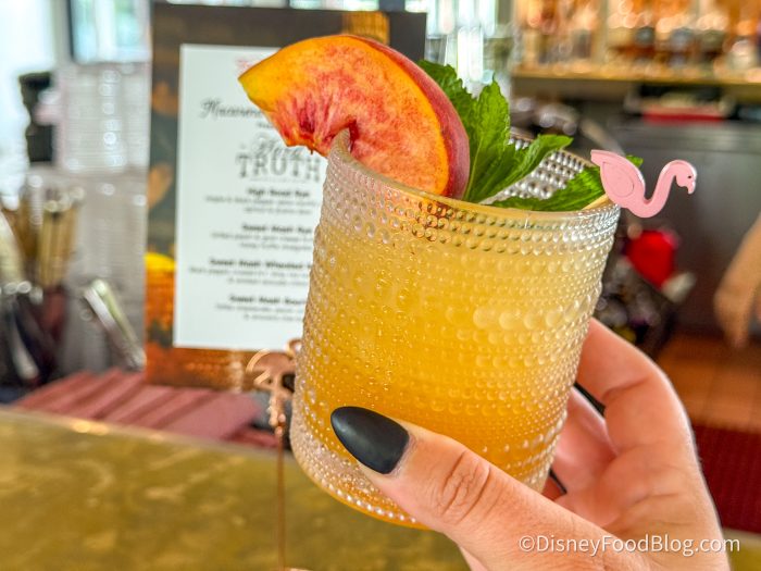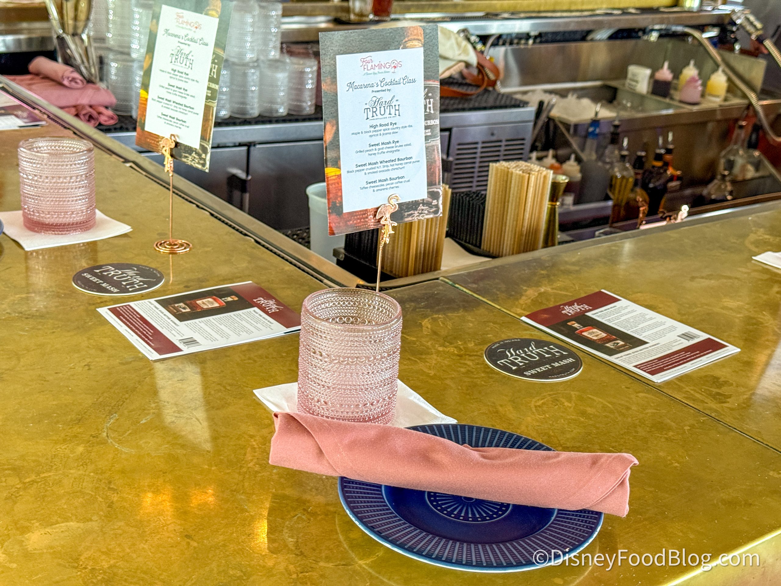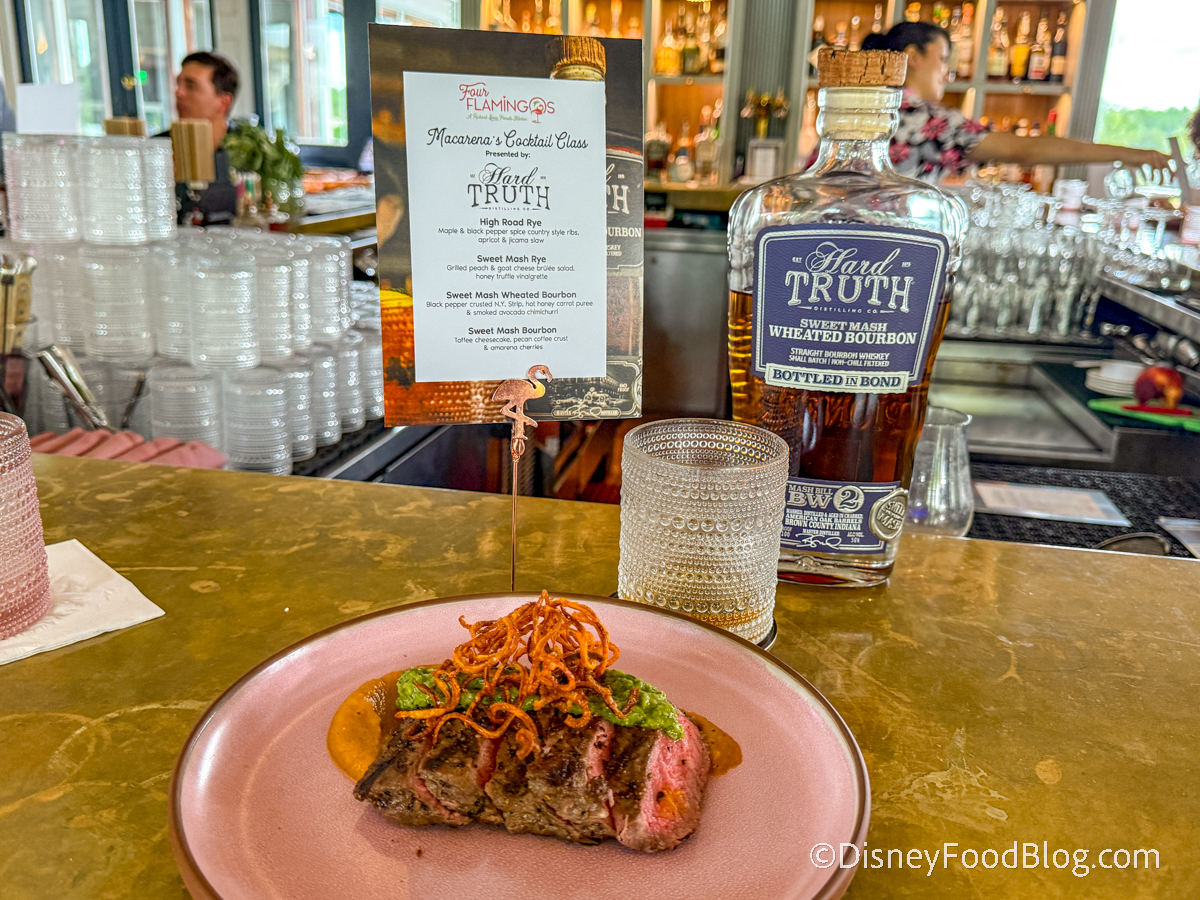 Disclosure: In nearly all circumstances, Disney Food Blog writers and photographers pay full price for their own travel, hotel, food, beverage, and event tickets. We do this because it’s important to us as journalists to ensure not only that we give you unbiased opinions, but also that you can trust us to do so since we’re paying our own way. On rare occasions, when we are invited by a company to attend a preview as media, and when we choose to accept that invitation, we will always make you, our readers, aware of that situation. Today, we were invited to attend the Four Flamingos Hard Truth Cocktail Class. Note that when we attend events as media, we are 1) Not required to review that event/food on any of our channels, and 2) Not required to review that event/food favorably. You can always count on DFB to give you a 100% unbiased and honest review of any event that we attend, food that we eat, or beverage that we drink. You can see more in our Disclosure Policy. Thank you for reading. — AJ