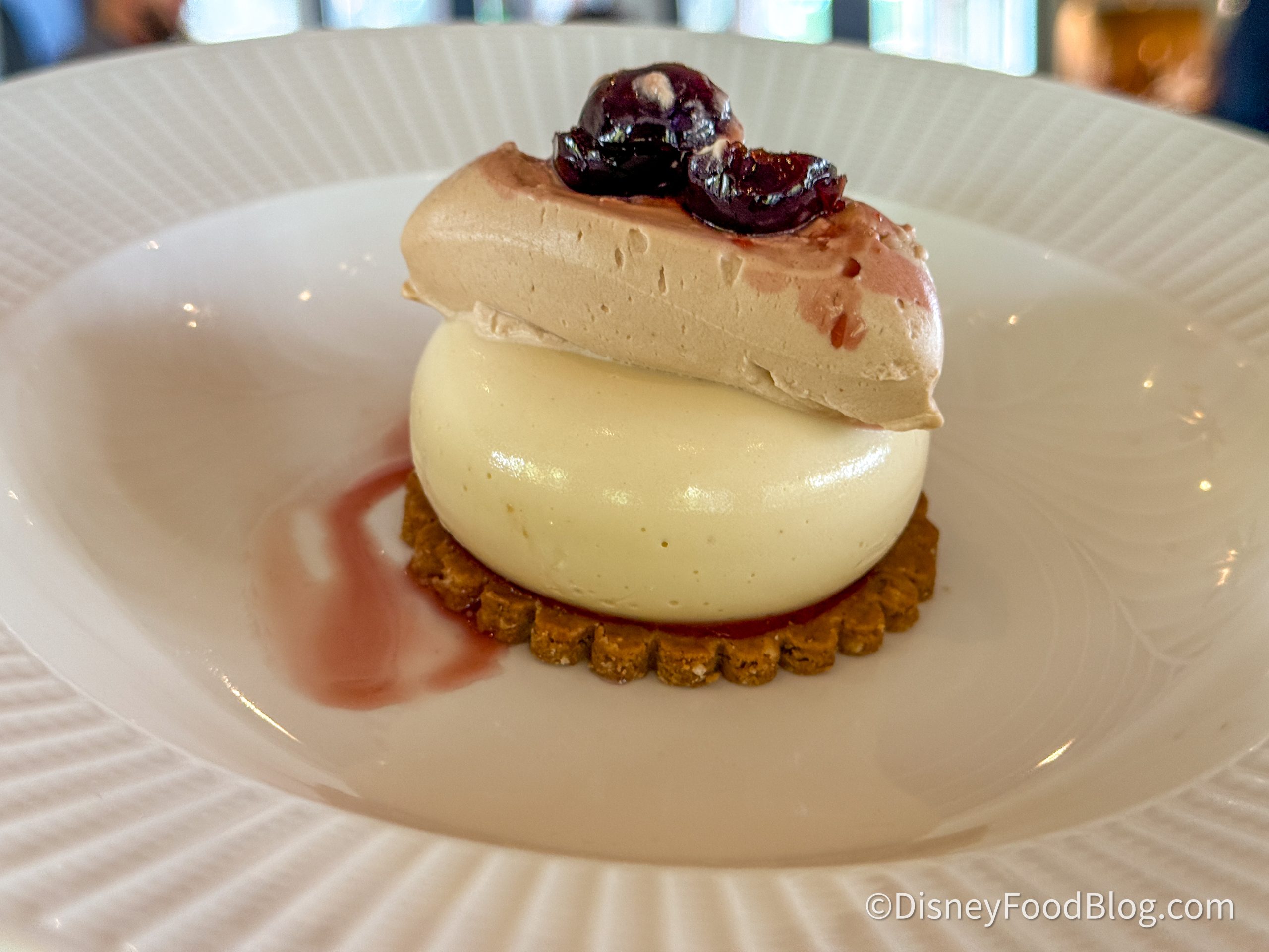 The cheesecake was another hit for us! It has more of a mousse texture, but it is smooth and sweet with an almost butter pecan flavor. It sits on a pecan coffee crust that falls apart in your mouth, with lots of pecan flavor. Then it is topped with cherries that add a black cherry flavor to the dish.