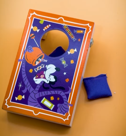 Once you have all the stickers, you return the map to select locations, and you get a prize. Now, we know what prizes will be available this year: a choice of several Halloween-themed mini cornhole sets. The choices include a Pluto Cornhole Set…