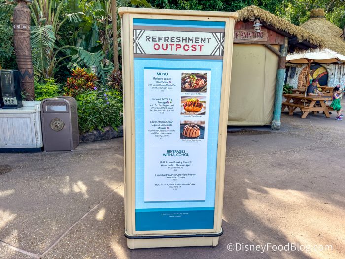 Look, let’s be honest… the Refreshment Outpost might not be one of those “stop in your tracks” spots you stroll past on a normal EPCOT day, but during the 2025 EPCOT Food & Wine Festival, you may just want to take that little detour to check out the eats and drinks this spot offers just for the event!
