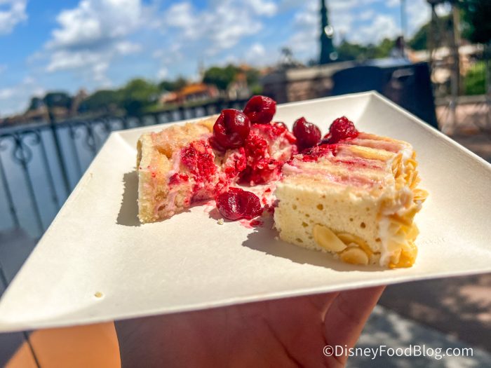 Both food items have the potential to be on the best of the fest list; we may have just caught the Warm Raclette Swiss Cheese and Alpine Ham on a bad day. We’ll be sure to go back and try it again and see if it hits more the next time. You do need to get the cake the next time you’re in EPCOT!