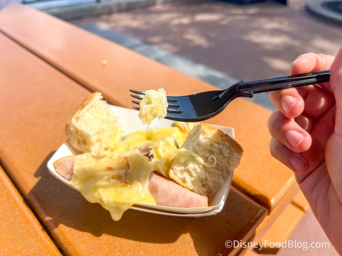 There was a lot of bread, and the bread was good. We liked the potatoes; they were cooked very well (neither too hard nor too soft), and the ham provided a great balance of flavor. We just found the cheese didn’t hit as much as it had before, and it didn’t stand out. The texture was not quite right — like it didn’t melt the way it was supposed to.