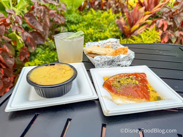 Finally, the Greek Melon Limenade! Even though Disney World is already decked out for Fall, this cocktail just screams “SUMMER!” It is made with Kleos Mastiha Spirit, Aelred Melon Apéritif de Provence, Pearl Vodka, and lime sour mix, and you can grab it for $12.