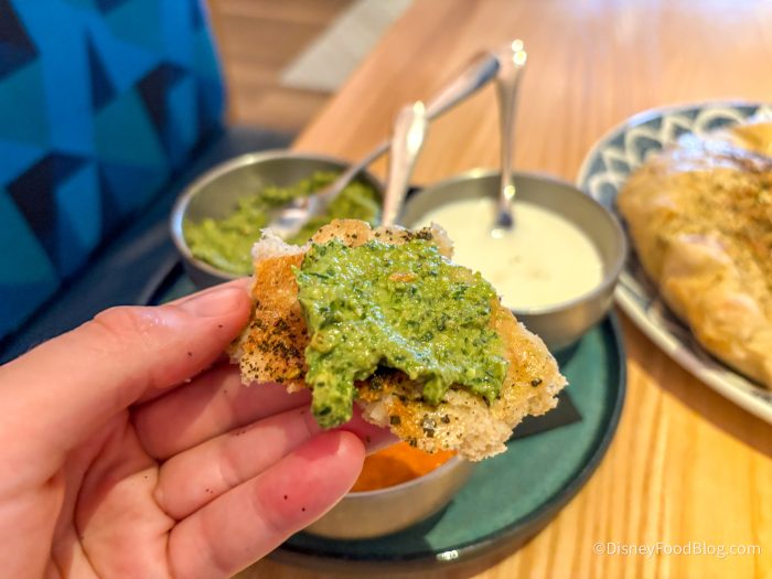 Finally, the Jalapeno Shatta had a lot of herby flavor to it, with the most prominent flavor being parsley. The chef said the seeds were taken out of the jalapenos, so it wasn’t super spicy, but it still had a slight kick to it. It had a bit more of a gritty/chunky texture to it, along with a nuttier taste, similar to walnuts. We were big fans!