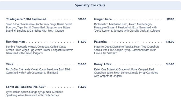 Amare is the signature restaurant located inside the Walt Disney World Swan Reserve. The restaurant is inspired by the tastes and cultures of the Mediterranean region, with a focus on highlighting fresh ingredients. Some of these ingredients include seafood, citrus, olive oils, pastas, and pitas. As well, you will find an extensive Mediterranean-based wine list as well.