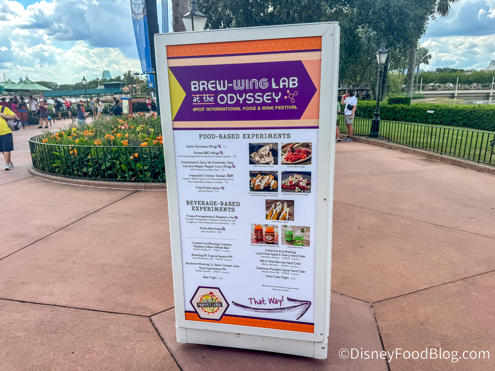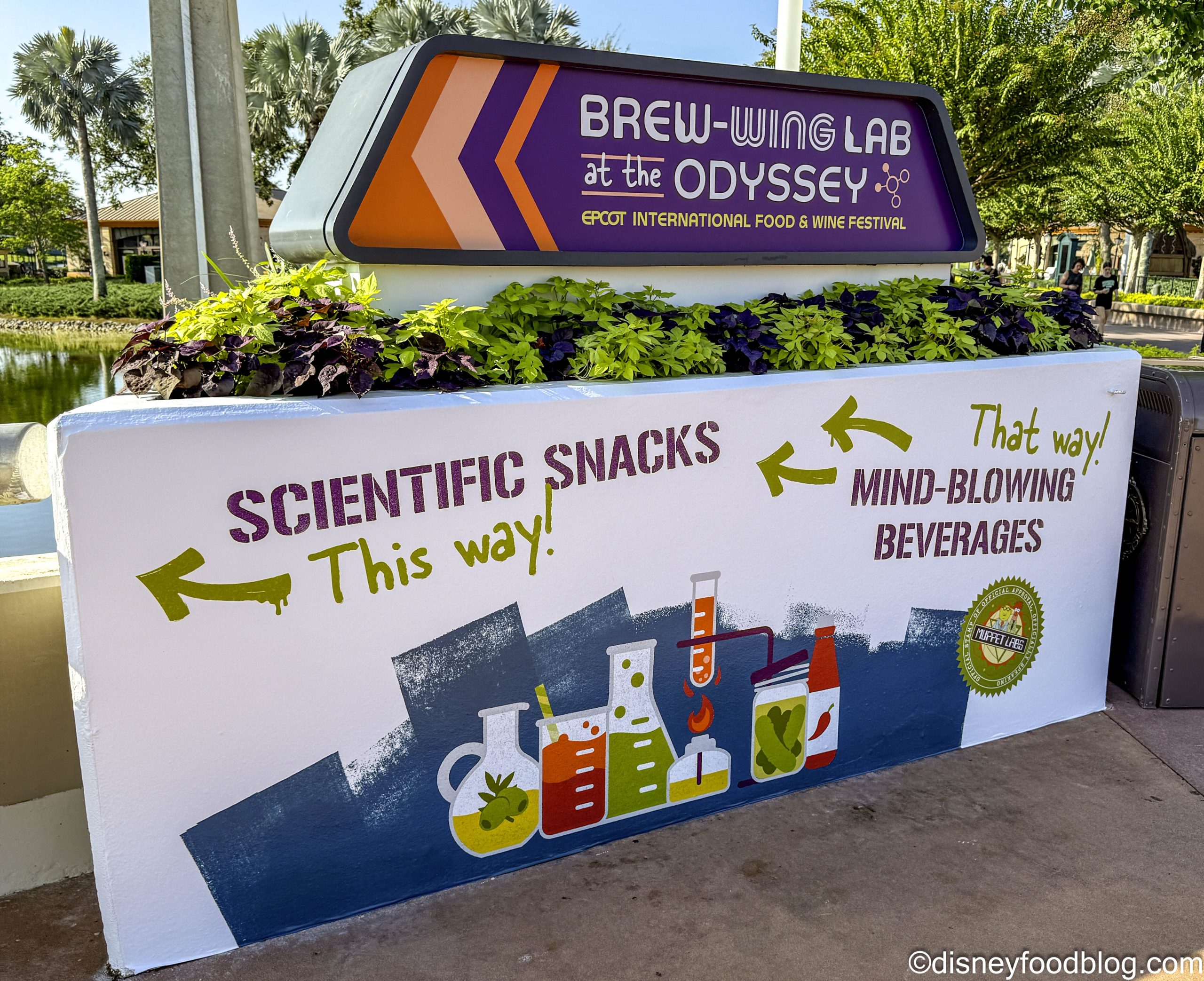 The famous Pickle Milk Shake’s home once again at the Festival is the Brew-Wing Lab. And things here at Brew-Wing run a little differently than the rest of the Festival Marketplace Food Booths. For one, it’s located inside The Odyssey Pavilion. For another, it’s graced with a unique MUPPETS theme! And we haven’t even talked about all of the other items (Wings! Beer! Cider!) in addition to the Pickle Milk Shake… Wait, you know what? I’m getting ahead of myself. Let’s just step inside so we can bring your our full review of the Brew-Wing Lab!