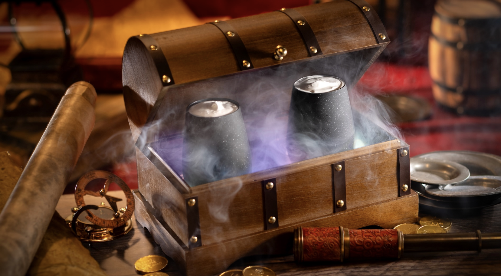 Finally, we got word about a new drink coming to Cask & Cannon, the bar “inspired by the iconic characters and scenes from the beloved Disney Parks attractions around the world.” This new bar will be “an eclectic yet cozy watering hole furnished with treasures ‘acquired’ (read: pillaged and pilfered) during the pirates’ many voyages around the globe.”